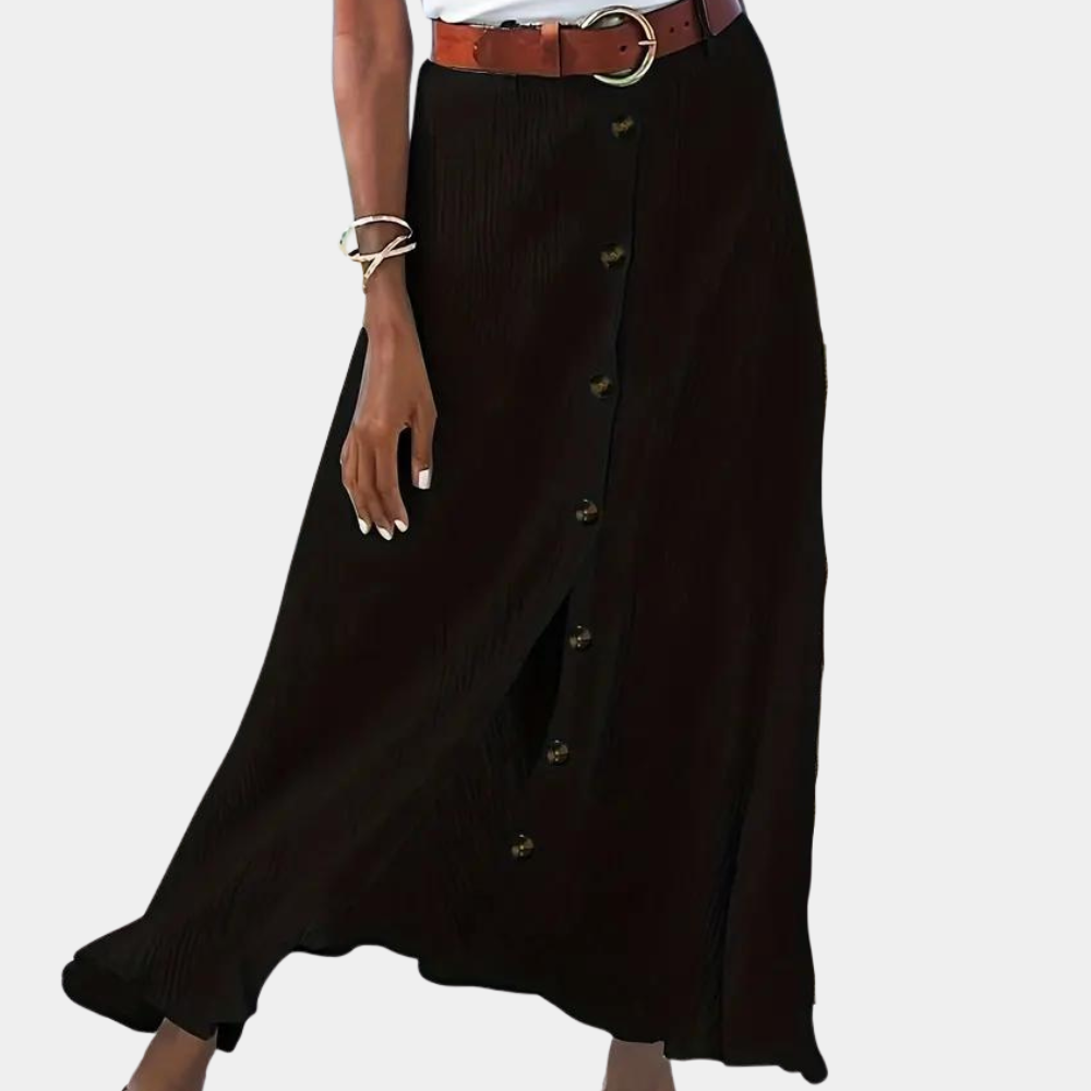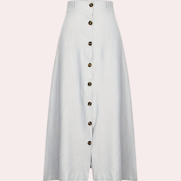 Der luftige Midirock mit feiner Plissee-Struktur und dekorativer Knopfleiste ist das perfekte Piece für warme Tage. Das leichte Material schwingt bei jedem Schritt locker mit und sorgt für maximalen Tragekomfort. Die Knöpfe auf der Vorderseite verleihen dem Design eine verspielte Note, während der elastische Bund die ideale Passform garantiert. Erhältlich in mehreren Farben, lässt sich der Rock sowohl entspannt als auch elegant kombinieren – ein echter Allrounder für Urlaub, City und Alltag.