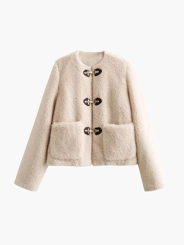 Diese Kurzjacke mit auffälligen Verschlüssen kombiniert Eleganz mit modischer Funktionalität. Die strukturierte Passform und die dekorativen Details machen sie zu einem Highlight für jeden Look. Perfekt für den Übergang, bietet sie Komfort und Stil in einem.