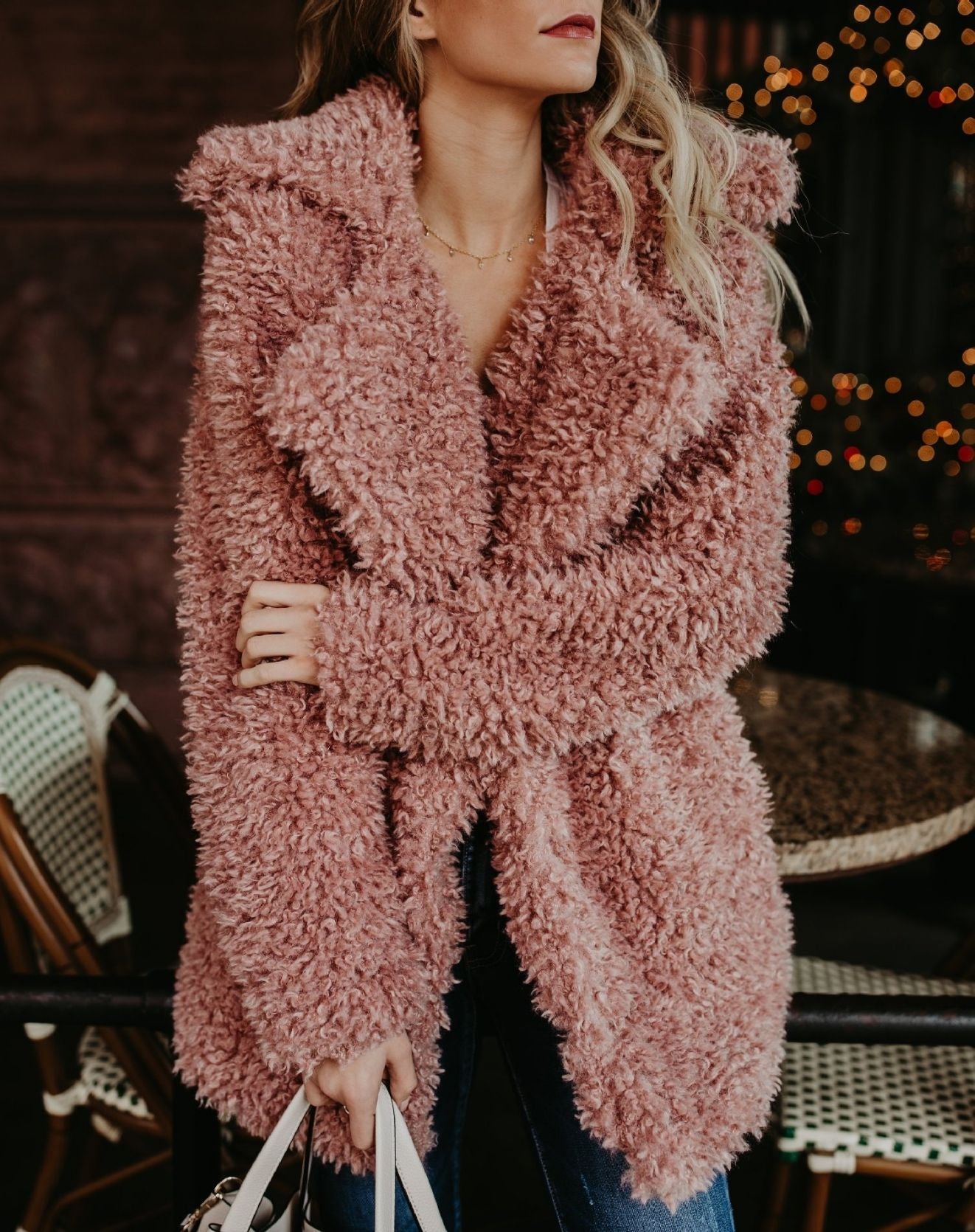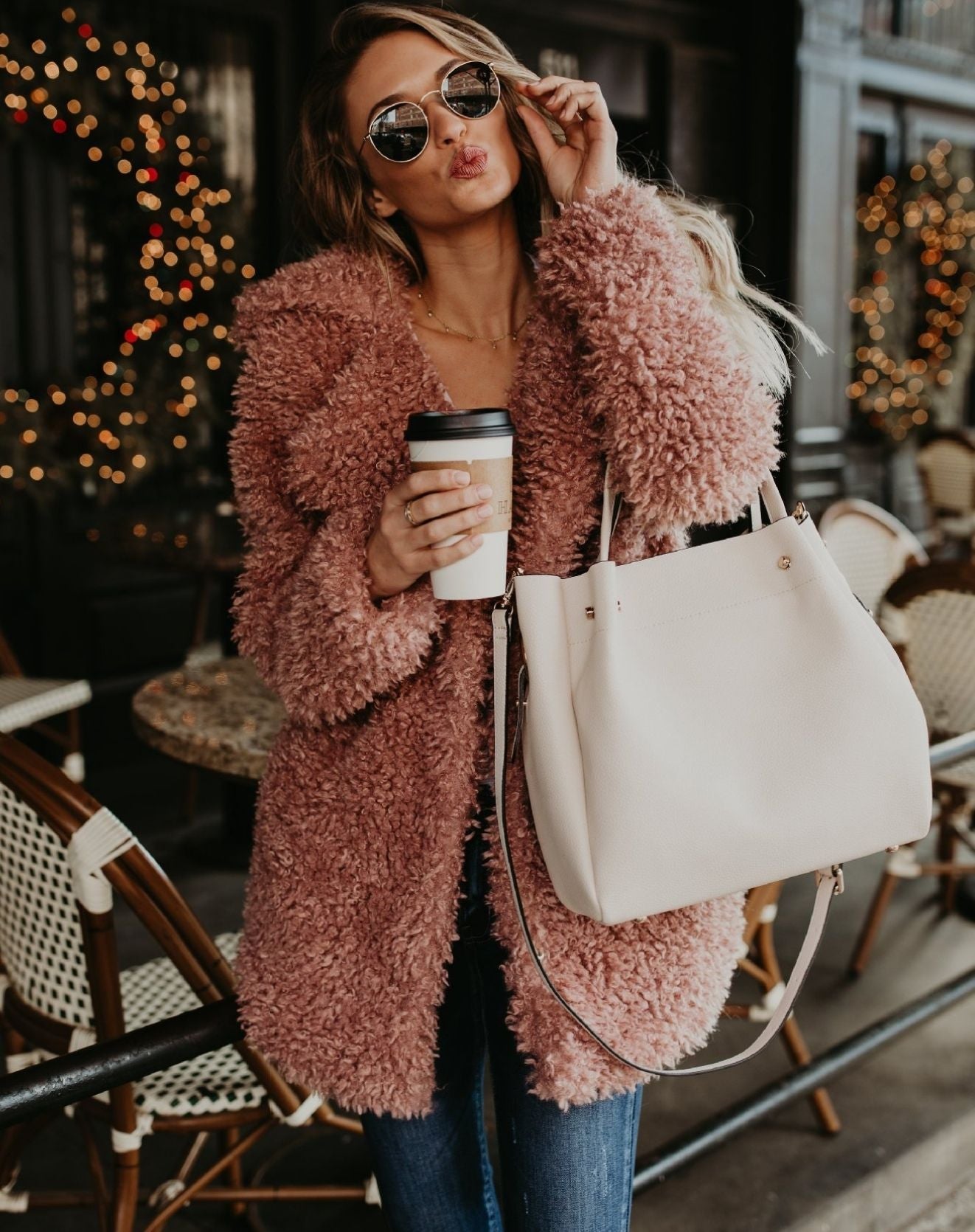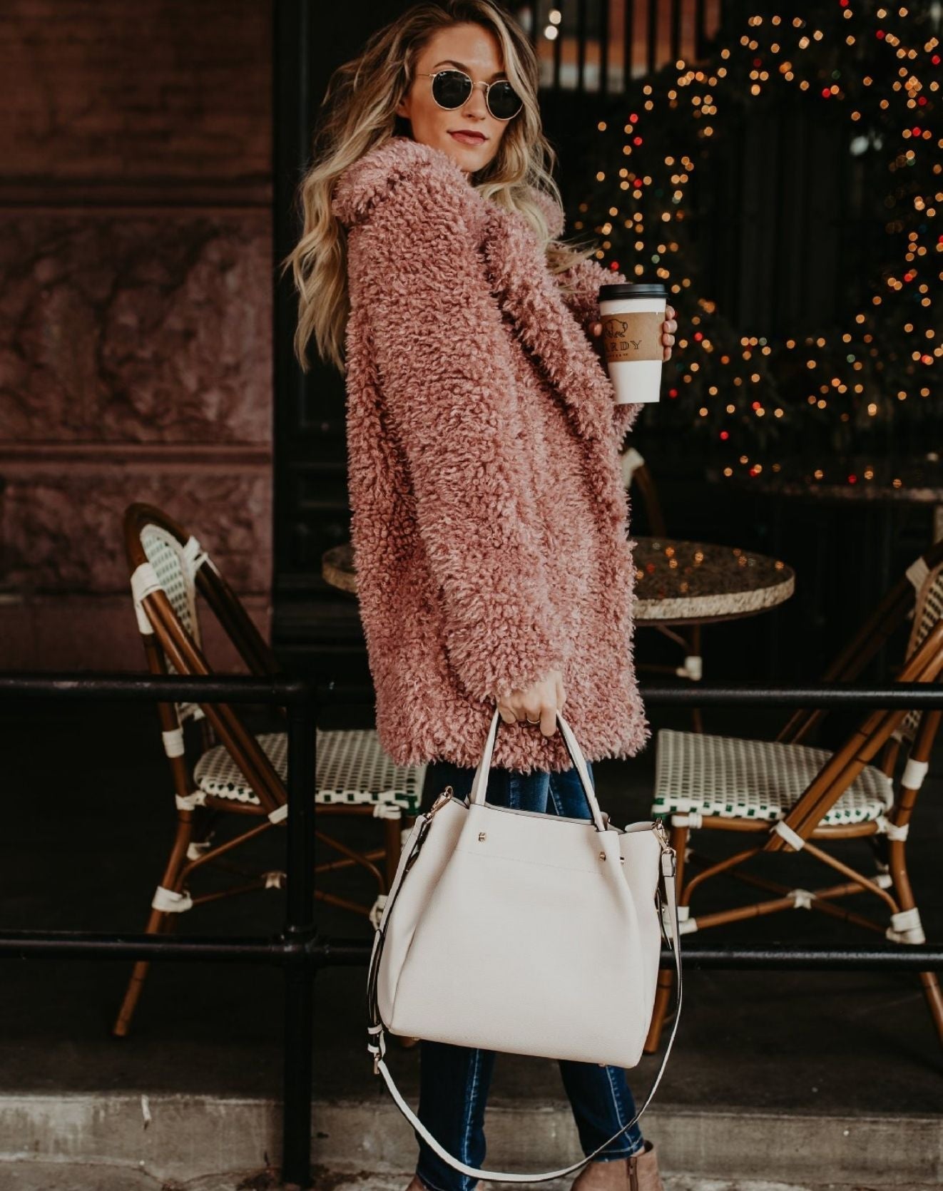- Ergänzen Sie den Look mit einer großen Tasche und einem Oversized-Schal für kalte Tage.
