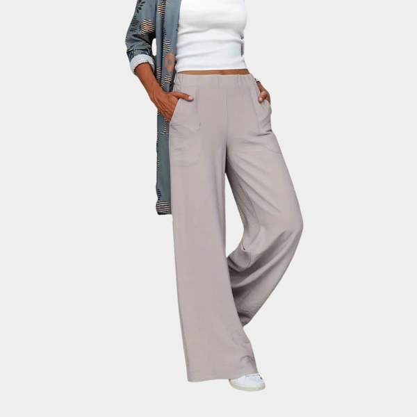 Ob zu Hause, beim Stadtbummel oder für den entspannten Office Friday – diese locker geschnittene Hose passt sich deinem Lifestyle an. Der elastische Bund sorgt für eine bequeme Passform, während der weite Schnitt für Bewegungsfreiheit und einen modernen Look steht. In klassischen Farben wie Schwarz, Beige und Taupe erhältlich, lässt sie sich vielseitig kombinieren und bietet einen lässig-eleganten Style für jeden Tag.